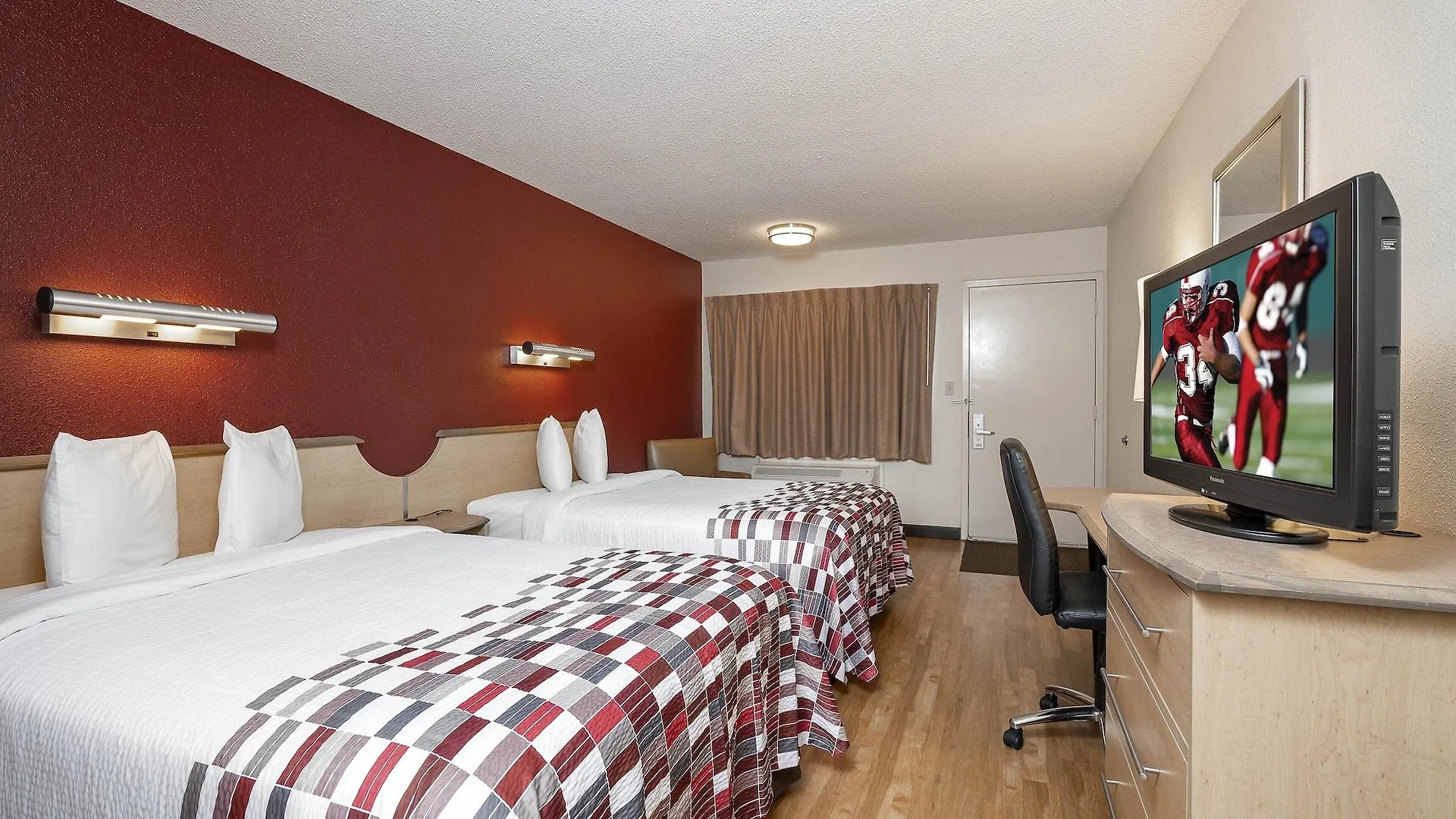 The rooms at the low-budget Red Roof Inn Syracuse include individual climate control and an ironing set. Some of them comprise a dining place and a mini-kitchen, furnished with a sofa. They come equipped with tea and coffee making equipment for self-catering along with complimentary Wi-Fi and a flat-screen TV with satellite channels for business and leisure. Providing a shower, the bathrooms are also appointed with a hairdryer and guest toiletries. Some of these comfortable rooms have views of the sea. Looking onto the sea, the apartment features kitchenette with an electric kettle, refrigerators, and an oven.